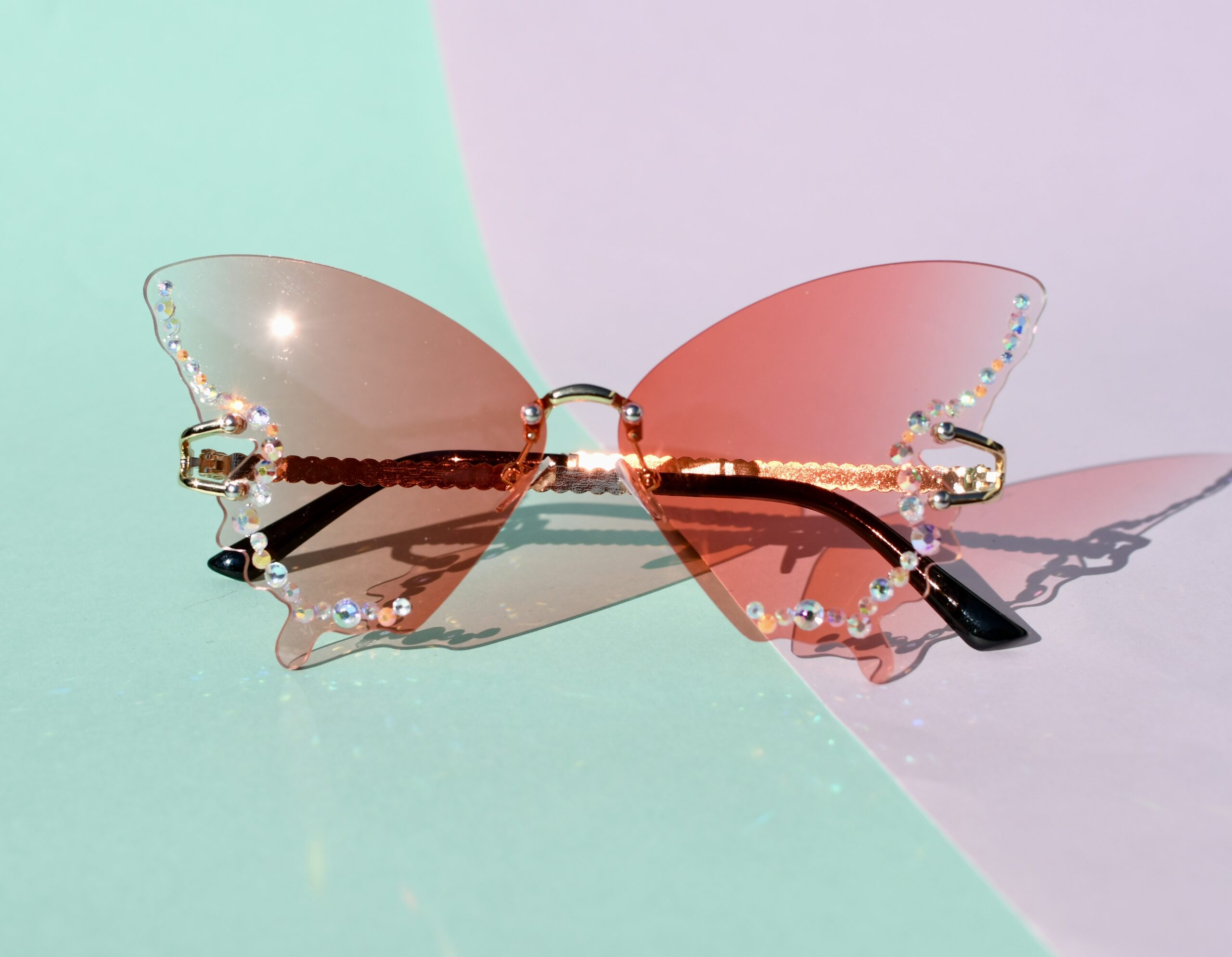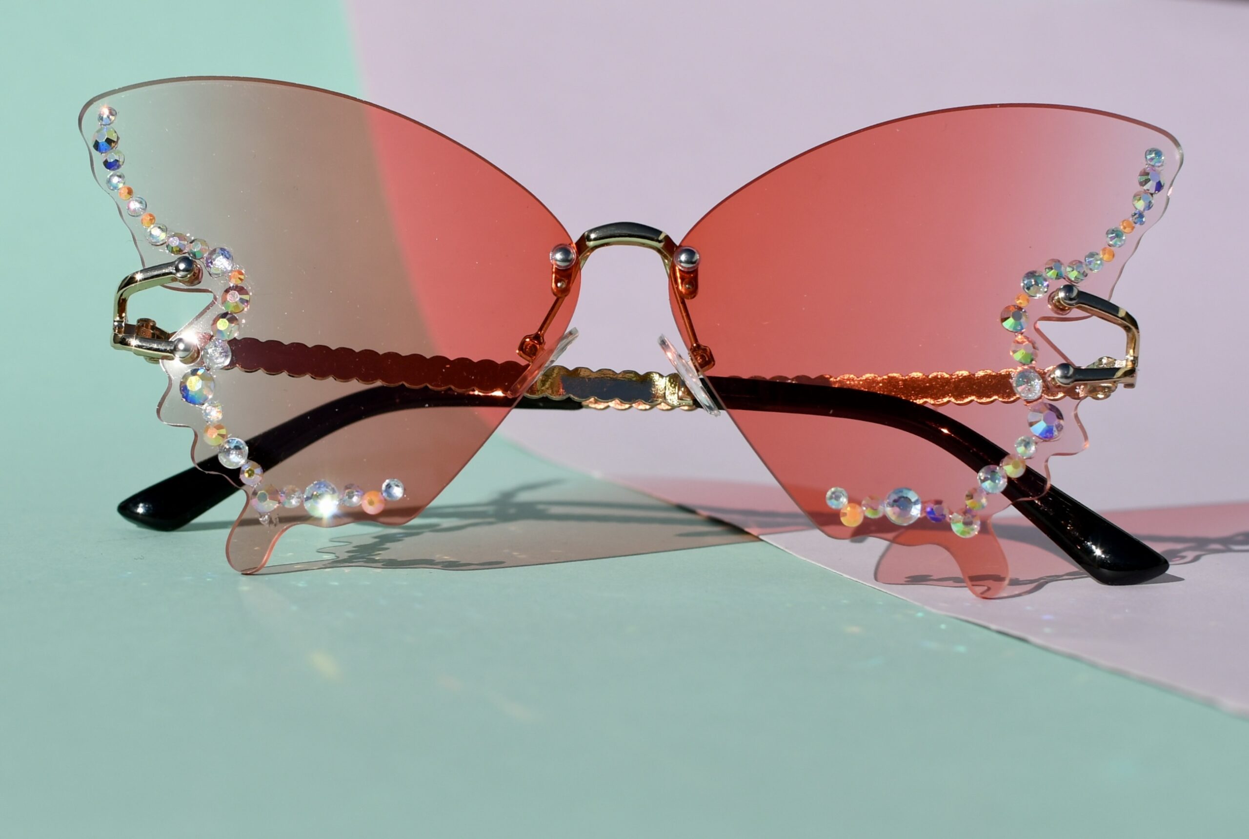 Kirjoita ensimmäinen arvio tuotteelle “UUTUUS – Korallit Perhonen Aurinkolasit Timanttikoristeilla – Useita Värejä”