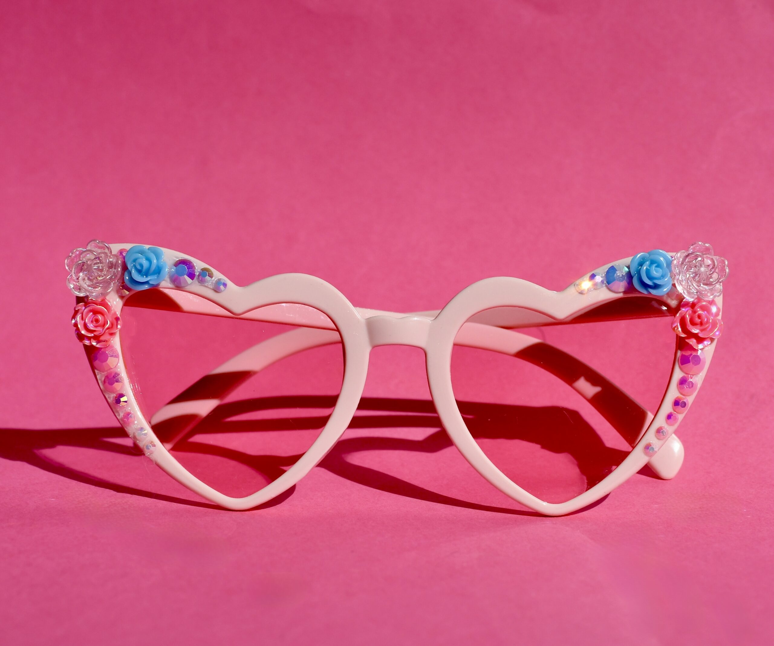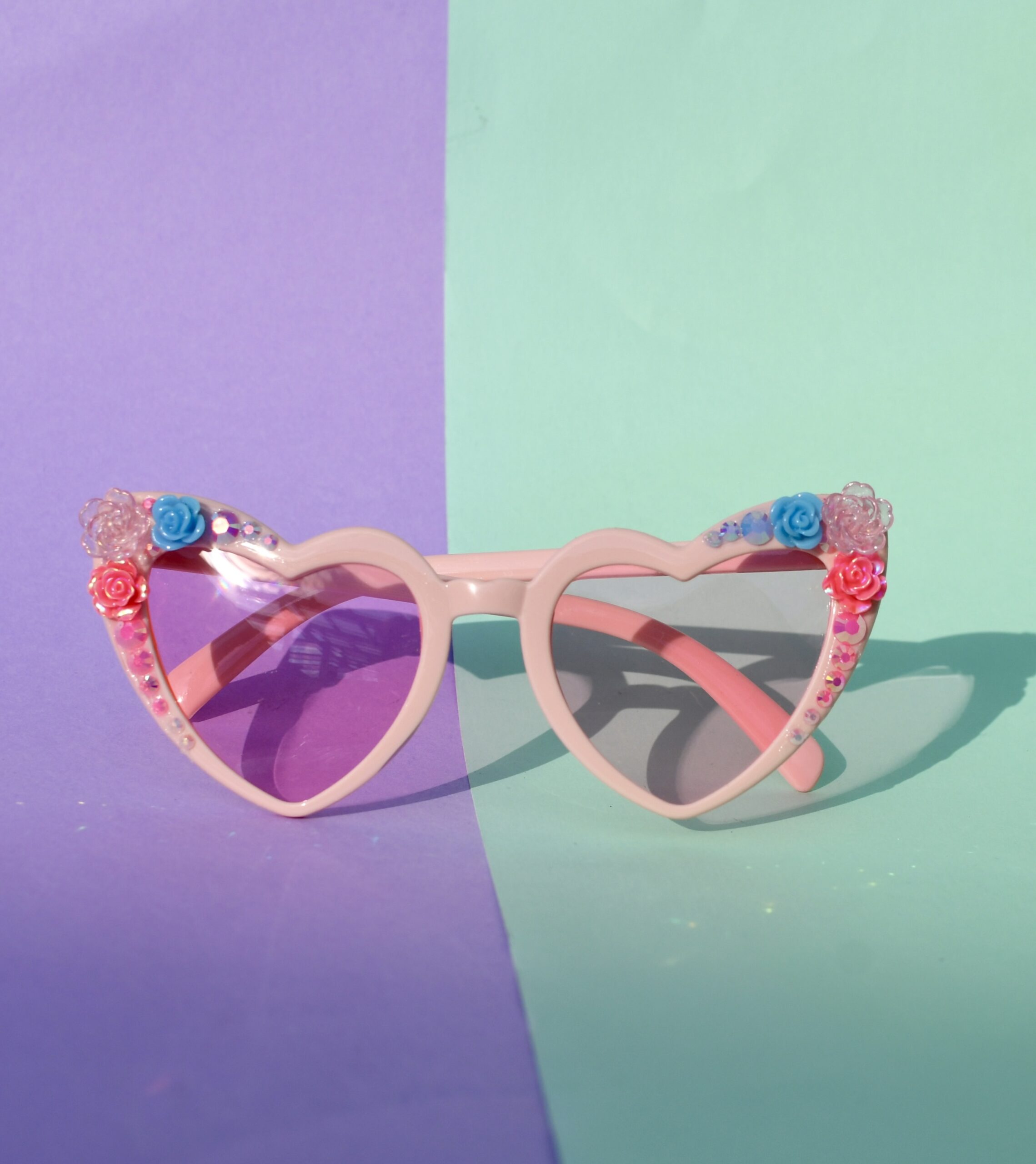 UUTUUS! Ihanat sydämen muotoiset aurinkolasit kääntävät varmasti katseet etkä häikäisty itsekkään! Kaikki koristeet on liimattu käsin, joten tuotteet ovat uniikkeja ja saattavat poiketa hieman kuvasta. Voit valita useasta erilaisesta mallista omasi. Leveys: 15cm, korkeus 6,5 cm, sangan pituus 14cm. Katso myös muut aurinkolasit täältä!