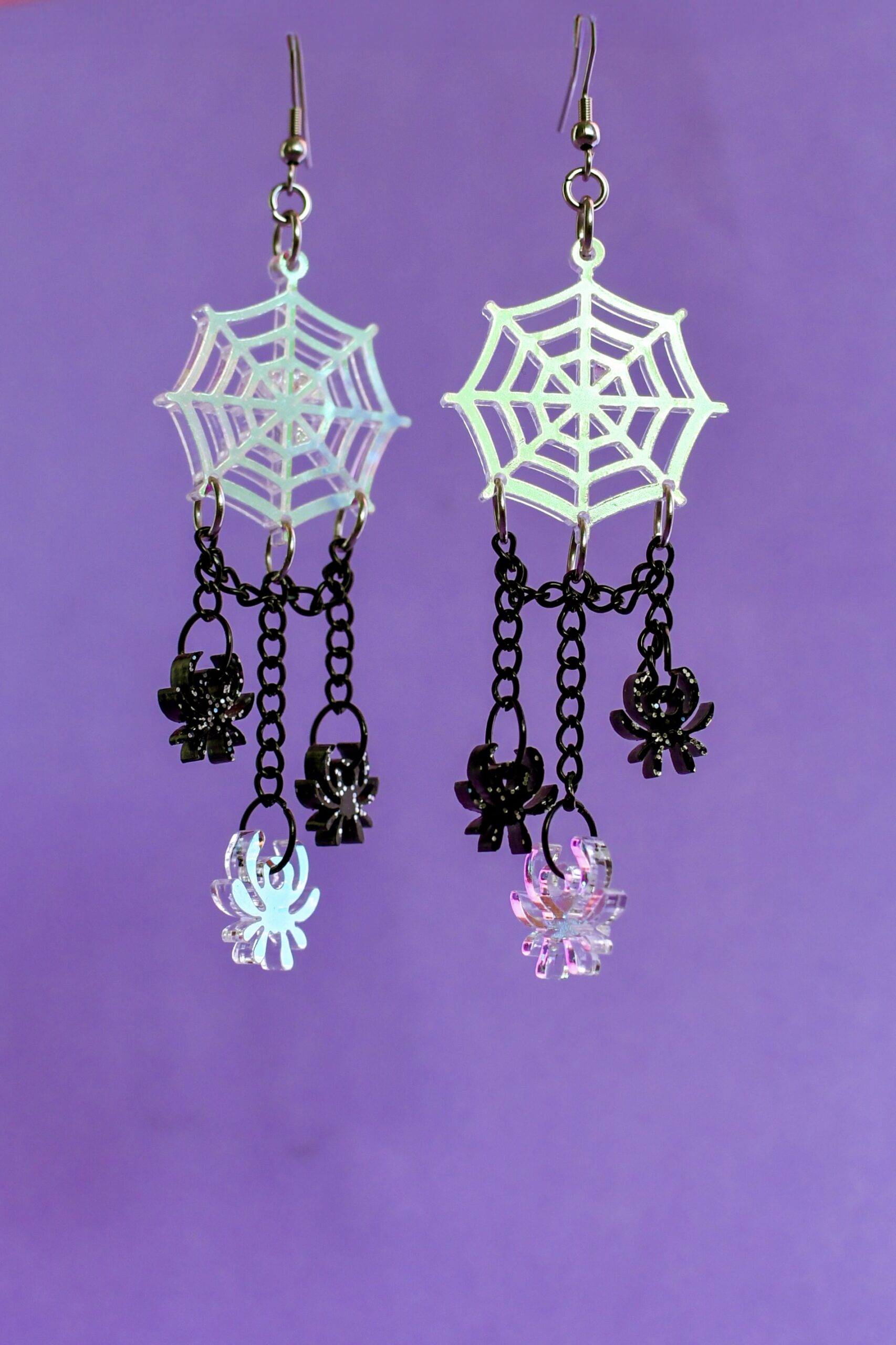 Upeat Hämäkin verkko korvakorut ovat täydellinen Halloween lookin kruunu! Voit valita koruun myös 2cm rengaskiinnityksen kirjoittamalla tilauksen lisätietoihin ”rengaskiinnitys”. Koruosan korkeus on noin 7,5 cm, Korvakorun kokonaiskorkeus koukun kanssa on noin 9 cm, paino vain 4 grammaa. Katso myös muut Halloween -korvakorut täältä!