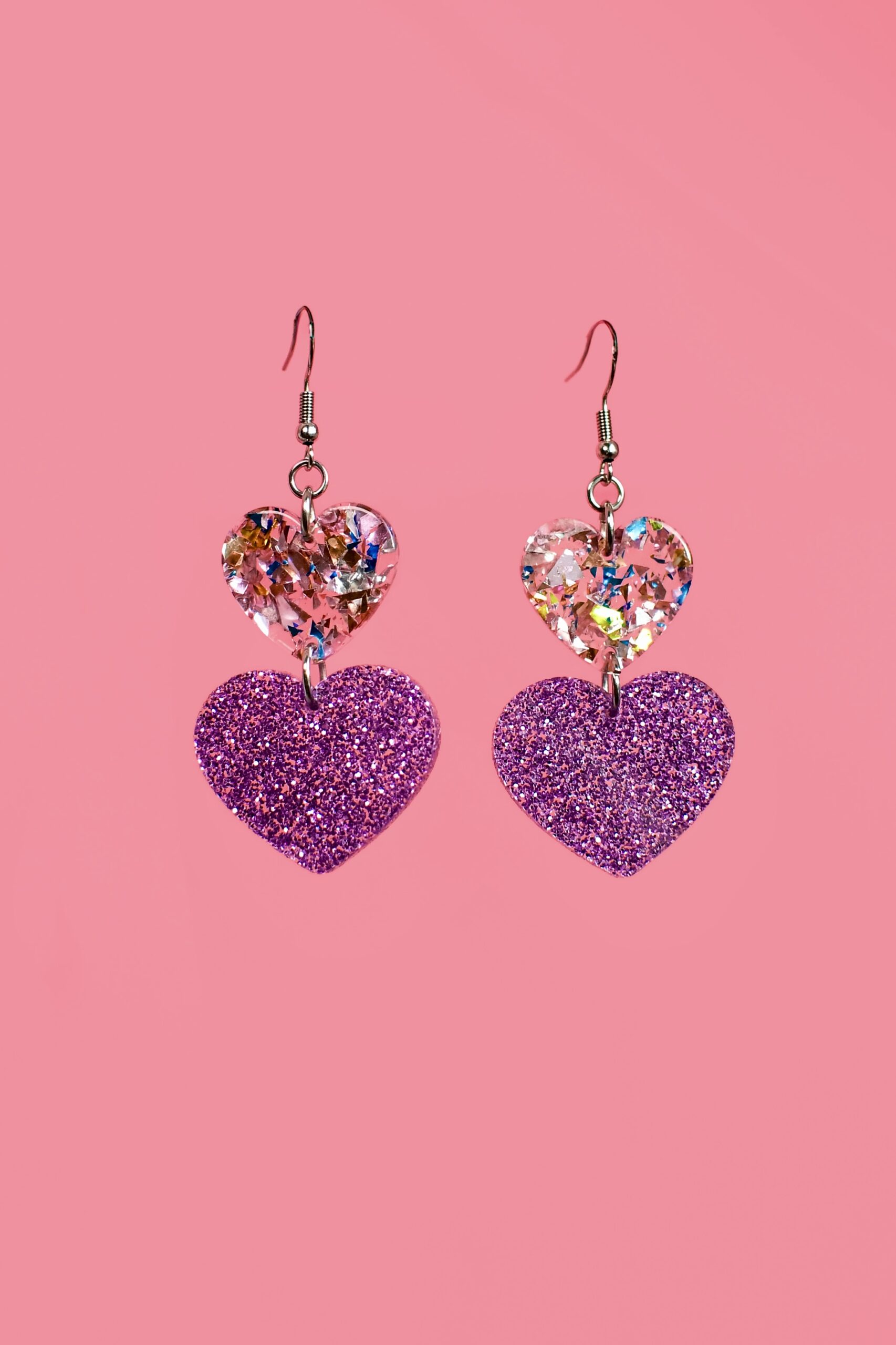 DoubleHeart Glitter Sydän Korvakorut – Useita Värejä