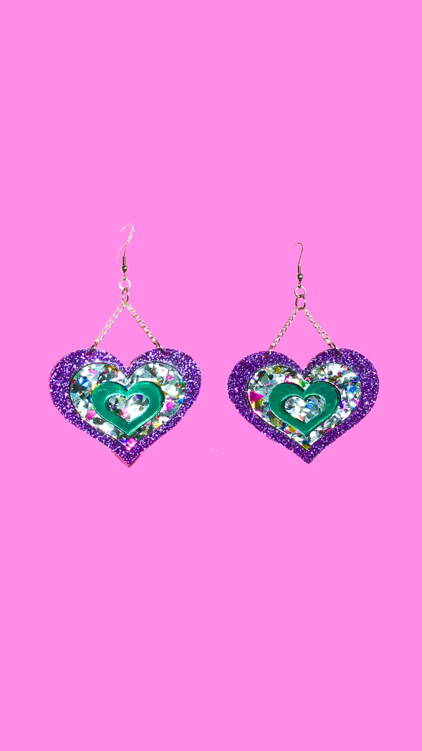 UUTUUS! Isot Moniväriset Supersydän korvakorut vangitsevat taatusti katseet! Korvakoruissa on useita värejä ja väriyhdistelmiä. Näyttävä korvakoru liikkuu kauniisti ja on ihanan kevyt ja ilmava korvassa. Voit valita useasta ihanasta väriyhdistelmästä mieluisat. Voit valita useista ihanista väriyhdistelmistä omasi, kuva vaihtuu karusellissa värin mukaan: 1. Party Love (liila glitter, monivärinen party glitter HUOM! paksuus 4mm, vihreä peilit), 2. liila love (liila glitter, keltainen peili, liila glitter, vaaleanpunainen glitter) 3. vihreä love (vihreä peili, vaaleanpunainen glitter, keltainen peili, pinkki glitter, 4. kultaliila love (keltainen peili, liila glitter, vihreä peili, kullan väriset koruosat), 5. VaaleanpunaVihreä Love (vaaleanpunainen glitter, vihreä peili, liila glitter)