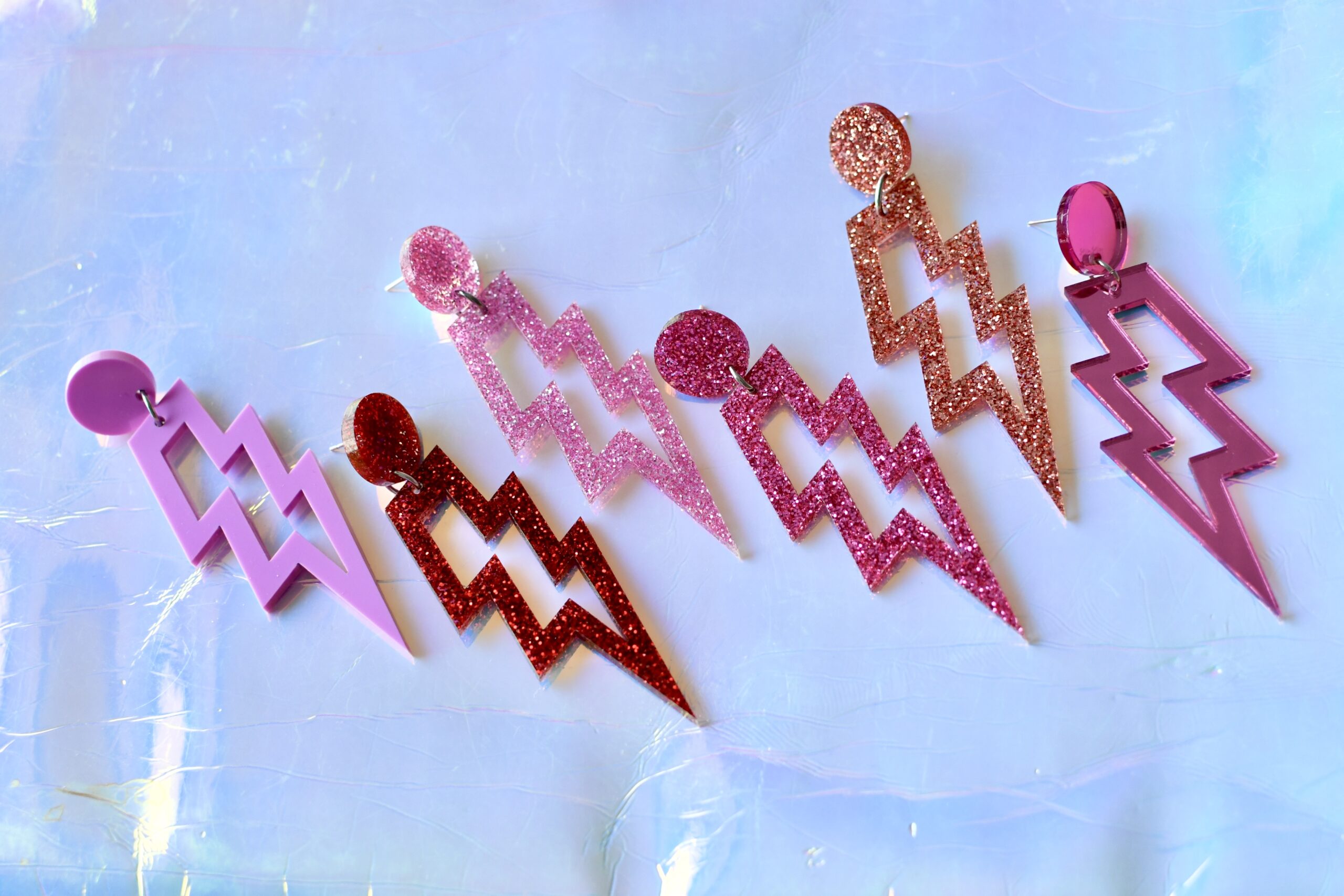 Statement -kokoinen Salama on 7cm korkea ja suunniteltu huolella asettumaan kauniisti kehystämään kasvoja! Yksikertainen mutta kaunis korvakoru on saatavana kolmella eri kiinnitysvaihtoehdolla: koukku, tappikiinnitys (tapin halkaisija 1,8 cm) ja esimerkiksi venytyksiin sopiva rengas (halkaisija 2cm). Kaikissa kiinnityksissä korun pituus on lähes sama eli 8,5 cm. Salama on saatavana useissa eri väreissä. Peilivärit: hopea, pinkki, vihreä, jade ja keltainen, glittervärit: hopea, jade, ruusukulta, punainen, musta, liila, vaaleanpunainen, pinkki sekä pastellisävyt: minttu, laventeli, purkkapinkki sekä iridescent -sävy.
