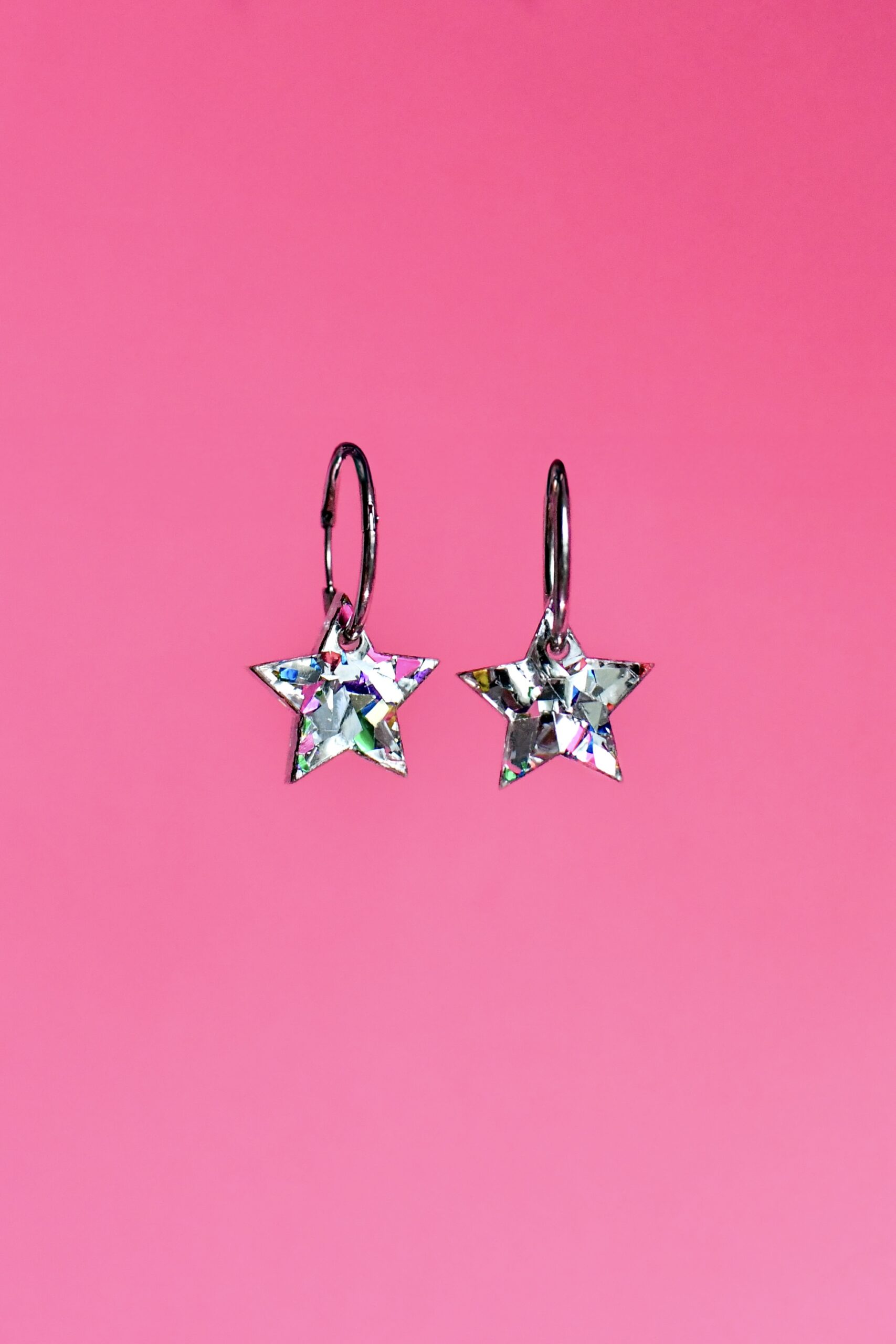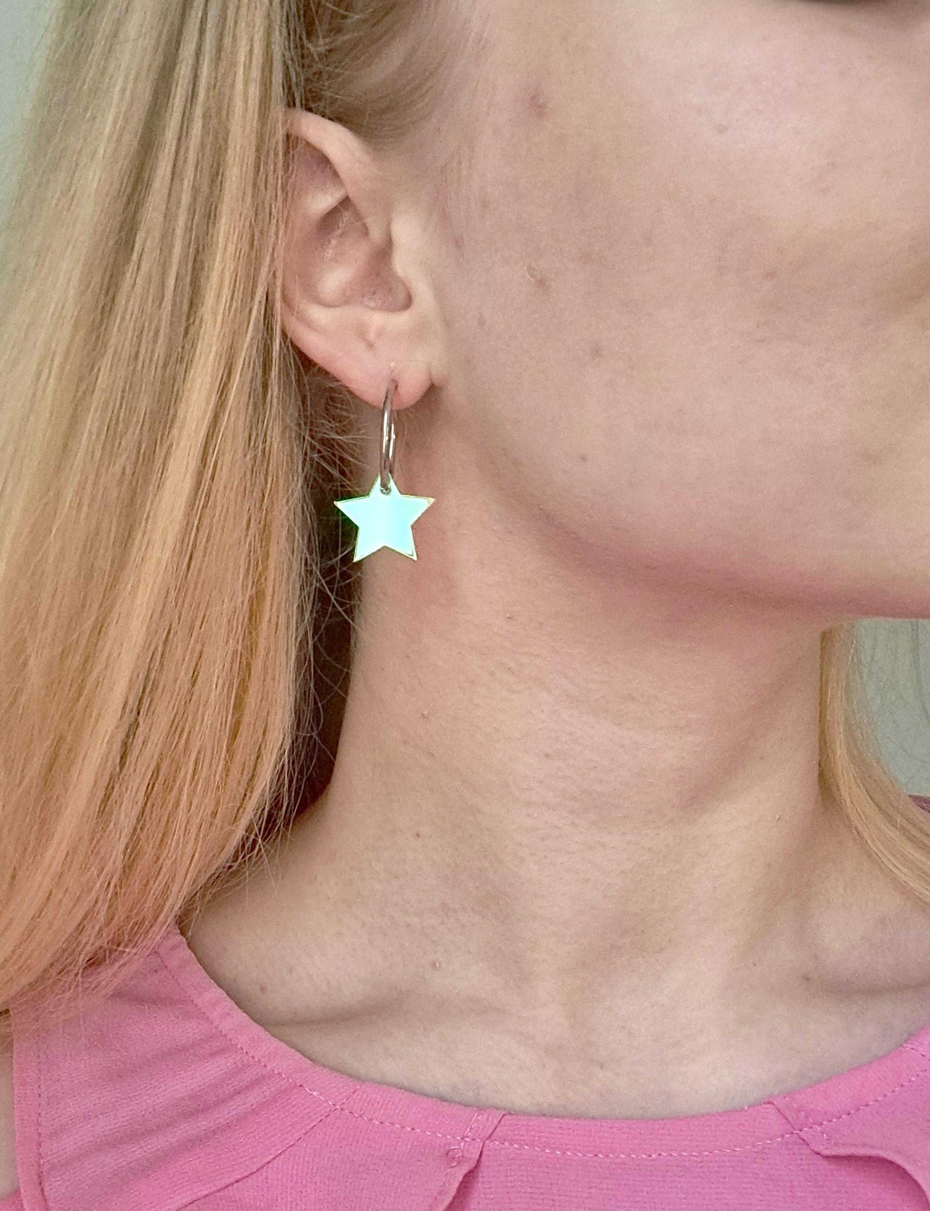 UUTUUS! Ihanat Pienet Tähti Korvakorut saatavana nyt useassa ihanassa sävyssä: iridescent, pinkki peili, jade glitter, pinkki glitter, liila glitter, monivärinen party glitter, iridescent sekä musta glitter. Kaunis koruosa on noin 2 cm korkea ja rengas on 2cm halkaisijaltaan, korun kokonaiskorkeus noin 4 cm. Rengas on jämäkkää ruostumatonta terästä. Koru on hyvin kevyt ja painaa vain 2 grammaa. Täydellinen korvakoru pienempien korvisten ystävälle! Sopii erinomaisesti myös lapsille! Löydät Tähden myös kolmessa isommassa koossa täältä! Katso myös muut uutuudet ja Nappikorvakorut!