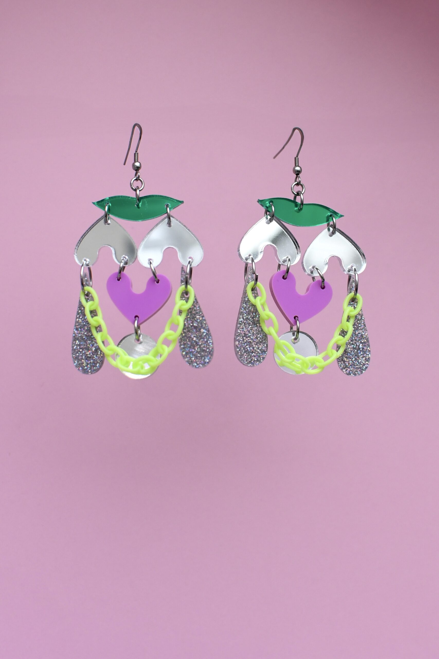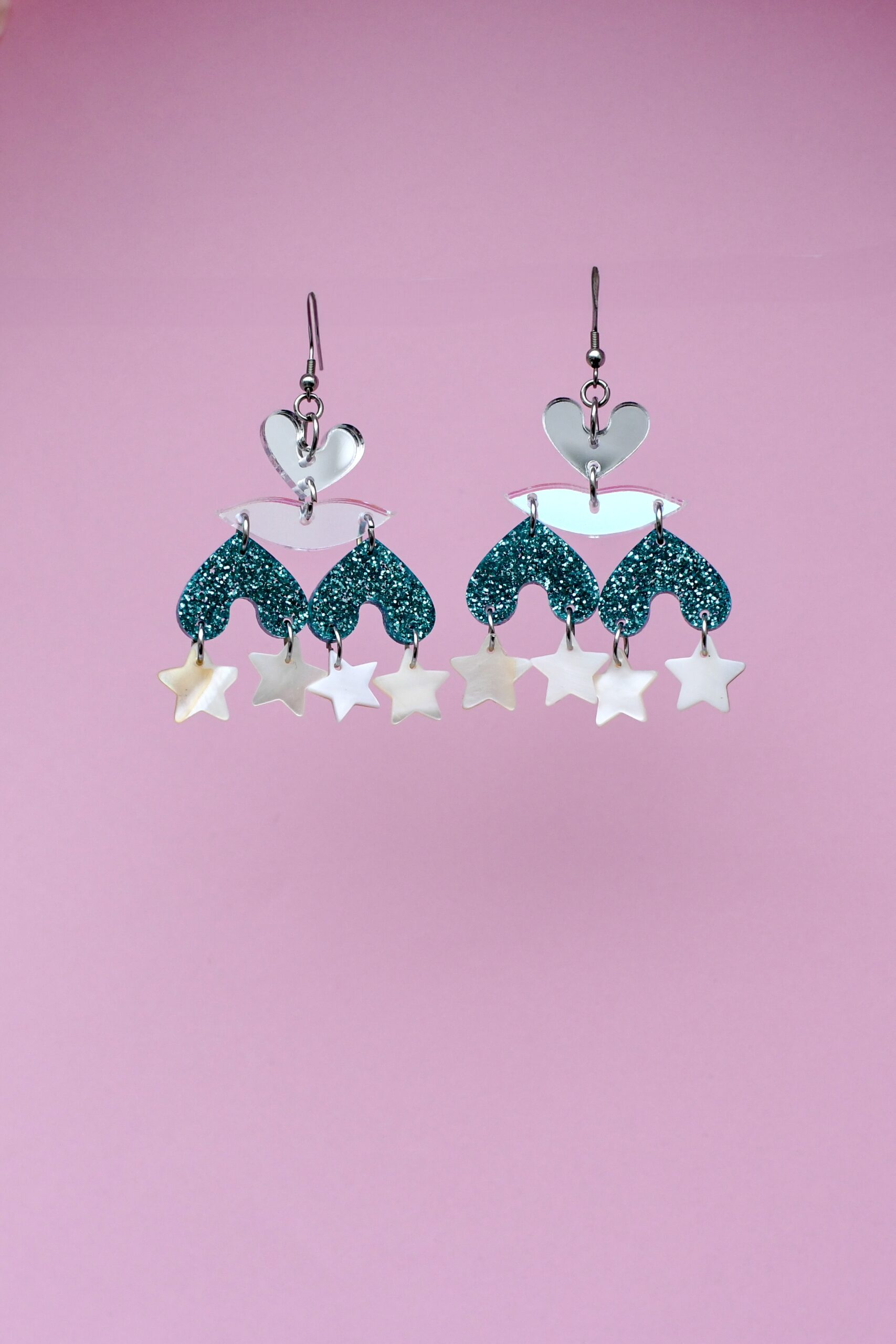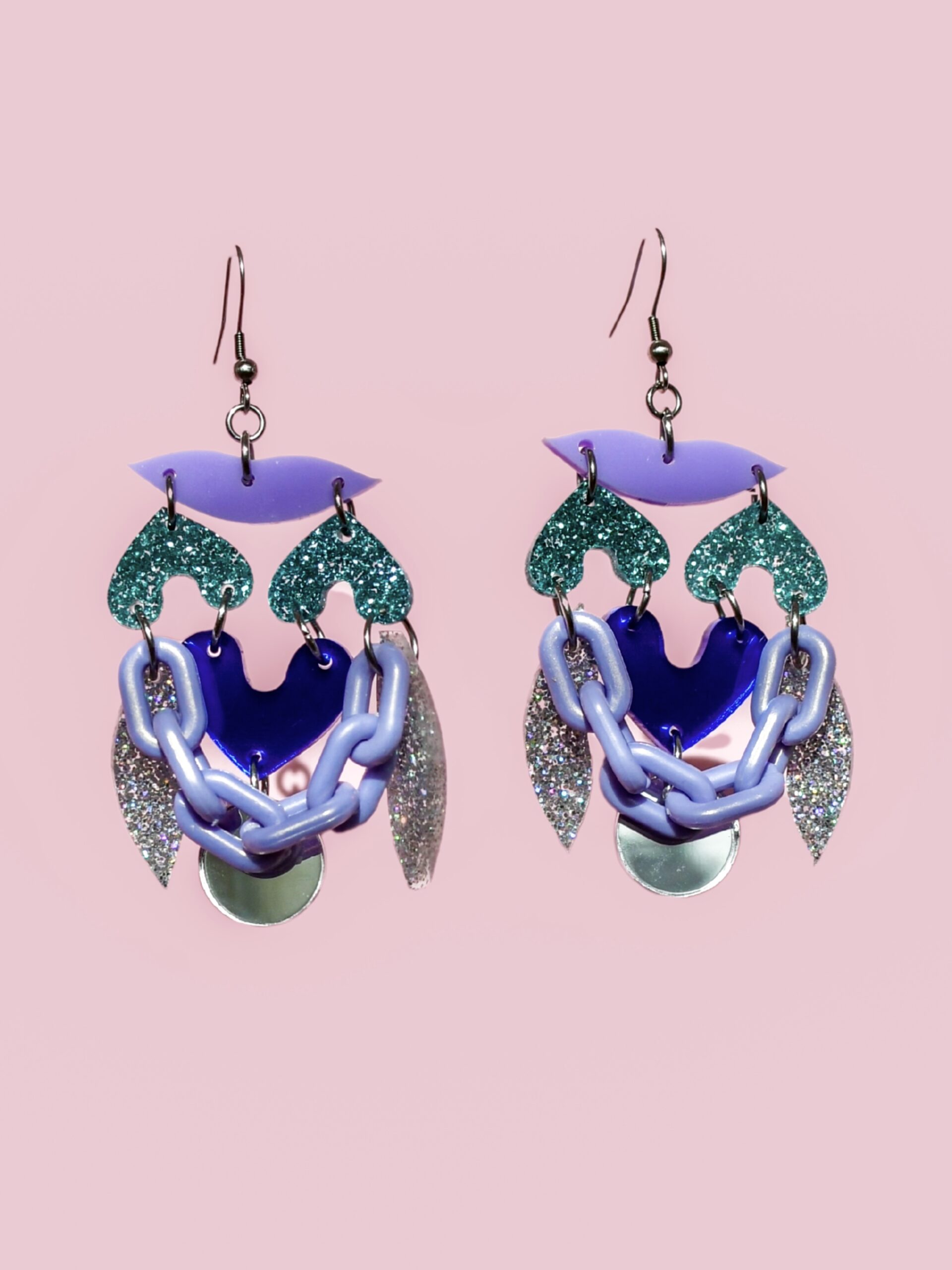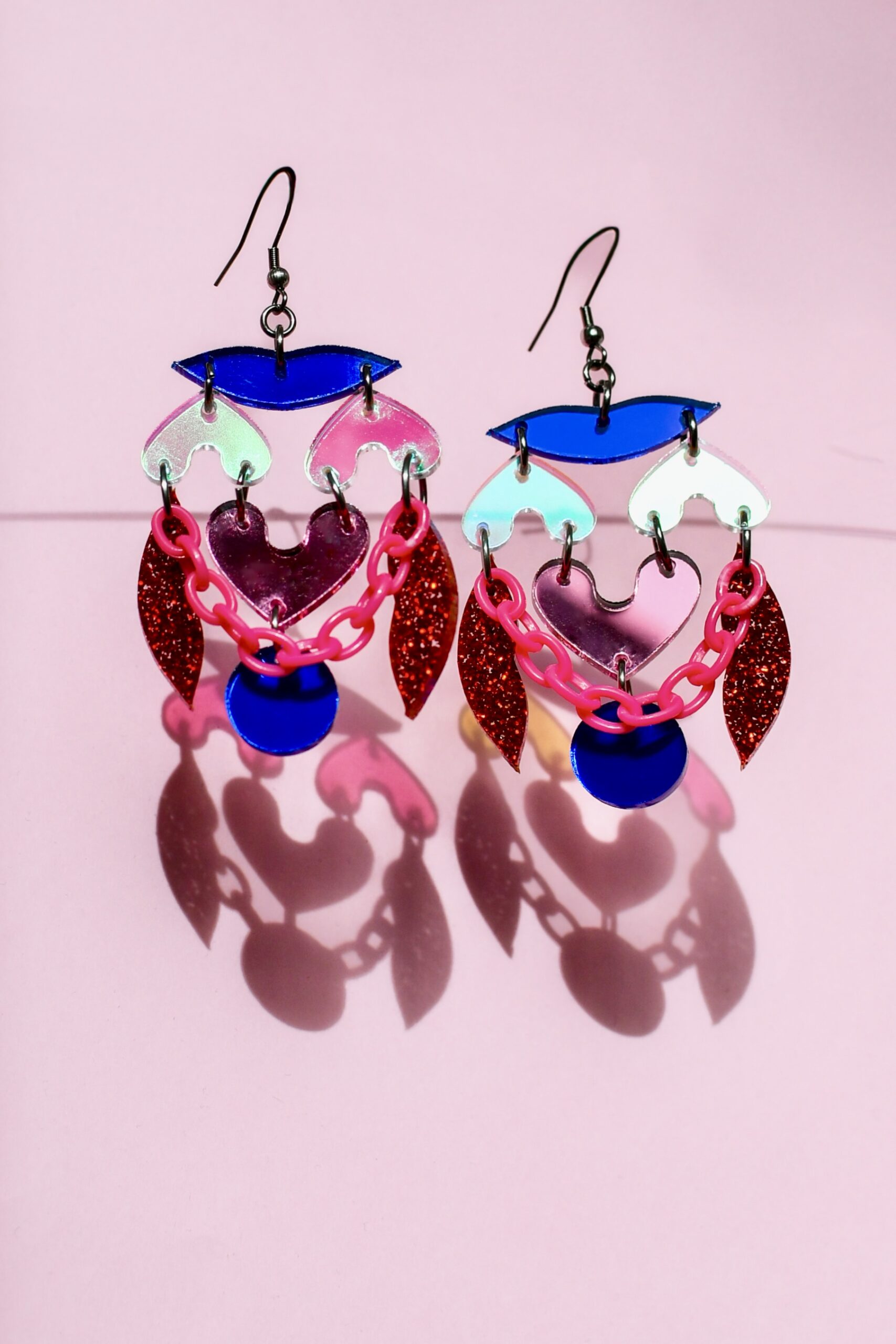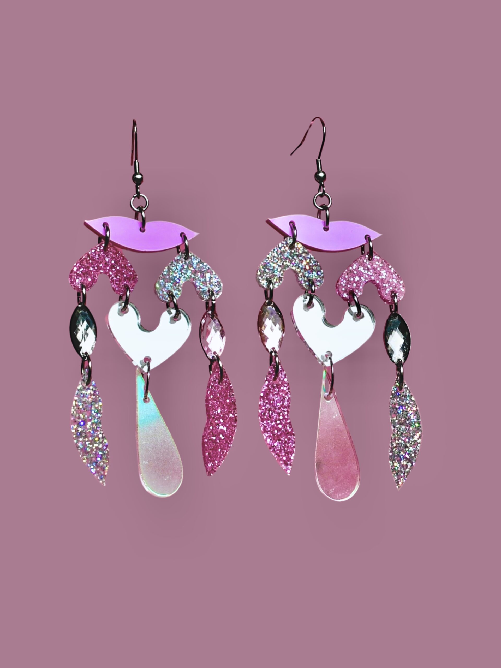 Näyttävät moniosaiset uniikit korvakorut! Heartless -malliston korvakorut on valmistettu ja suunniteltu huolella leikkuusta ylijäävistä osista yhdistellen niihin korukiviä ja koruosia. Jokainen pari on uniikki ja näyttävästä koostaan huolimatta kevyt! Kokonaispituus: noin 7 cm, koruosan pituus 5,5 cm, paino 4 grammaa. Voit valita kiinnitykseen myös renkaan, kirjoita tilatessa lisätietoja -kenttään ”rengaskiinnitys”. Heartless 30 värit: musta glitter, vaaleanpunainen, iridescent. Koukku on laadukasta ruostumatonta terästä. Katso myös muut HEARTLESS -malliston korvakorut TÄÄLTÄ!