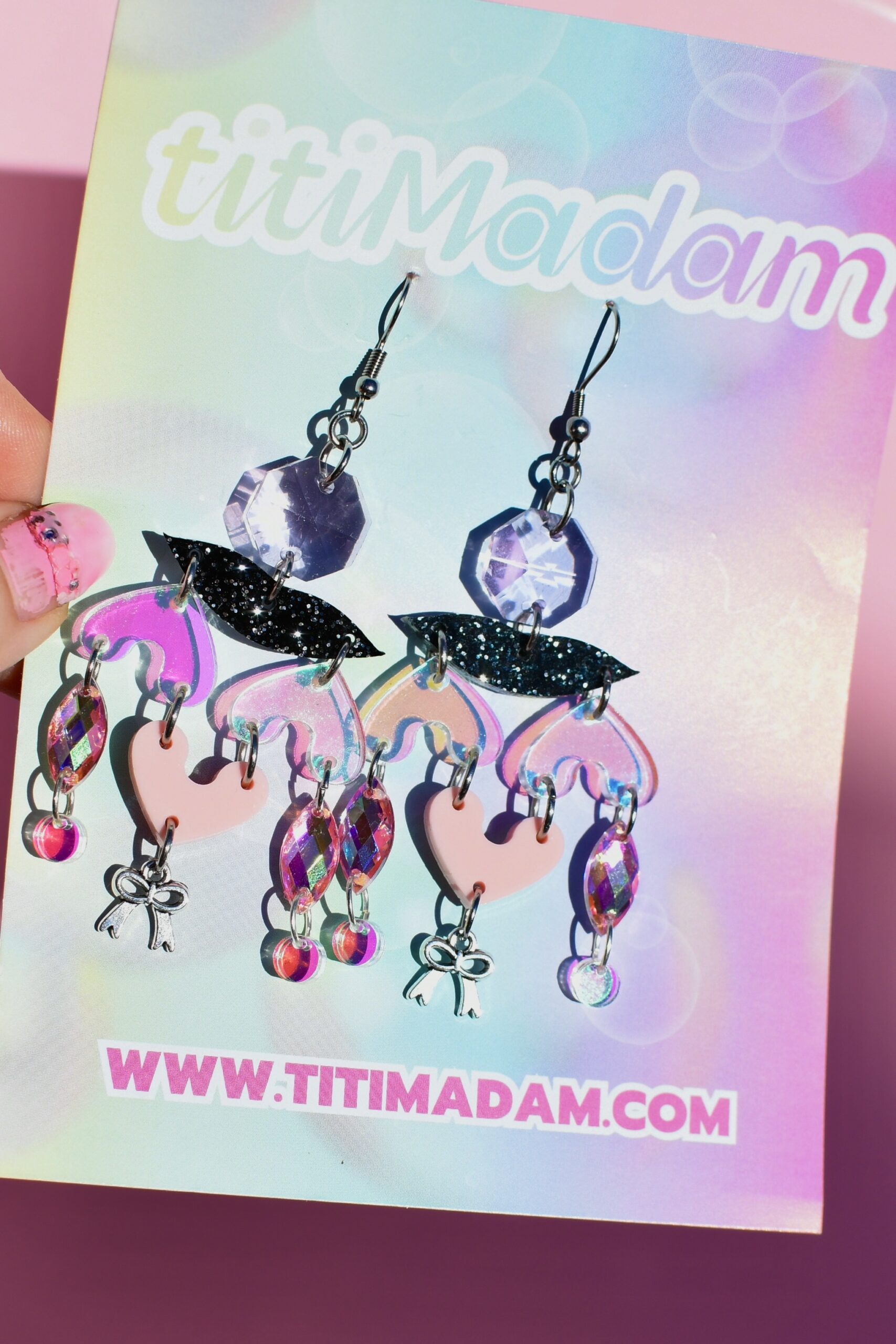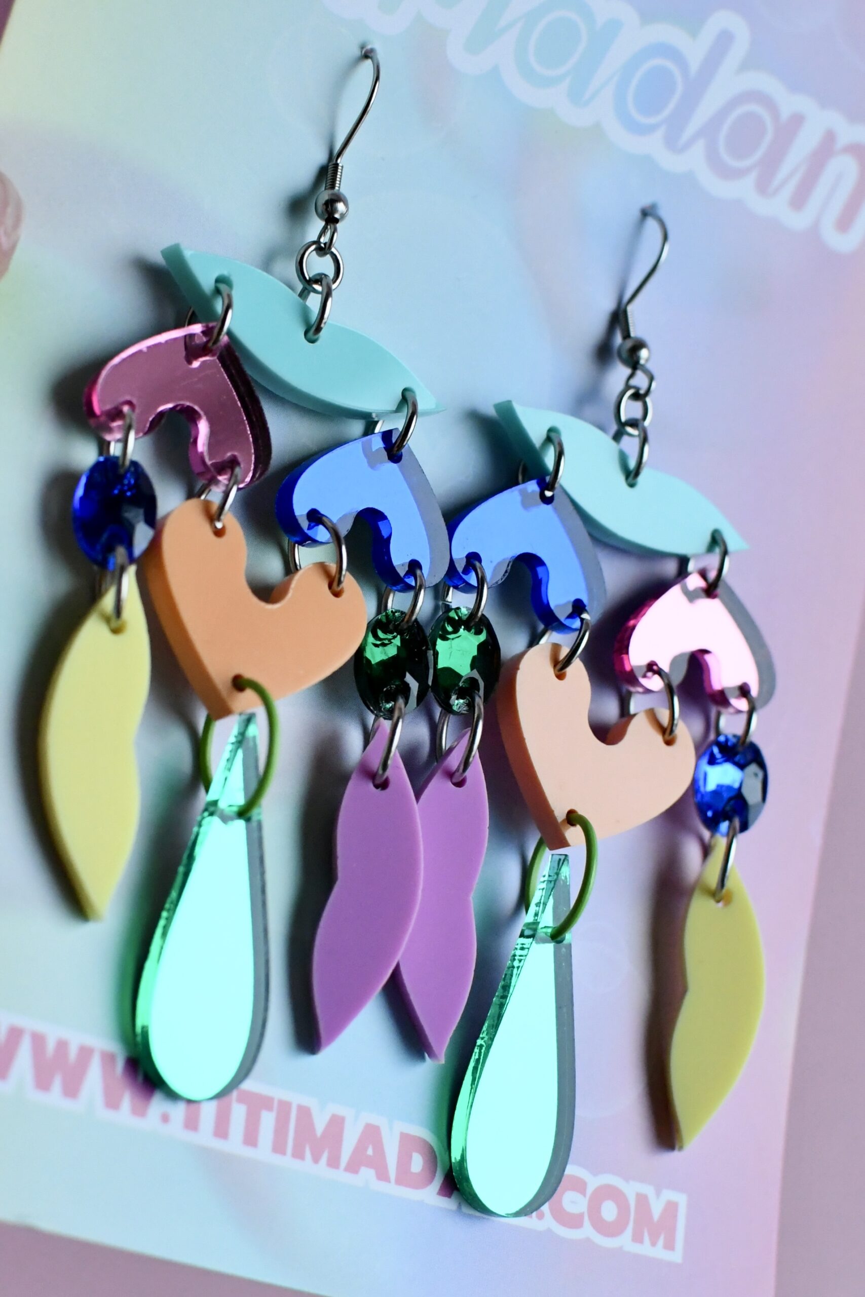 Jos haluat korvakorut 2 cm rengaskiinnityksellä kirjoita tilauksen lisätietoihin ”rengaskiinnitys”. Kaikki titiMadam -korumalliston korut suunnitellaan ja kootaan Suomessa. Korut on valmistettu pääosin 2mm, 3 mm tai 4mm paksuisesta akryylista Suomessa. On hyvä muistaa, että joissain hahmoissa on teräviä osia, jotka saattavat hajota väärässä käytössä. Kaikki korut ja koruosat ovat nikkelittömiä ja myrkyttömiä. Lisää koruinspiraatiota Instagramissa!