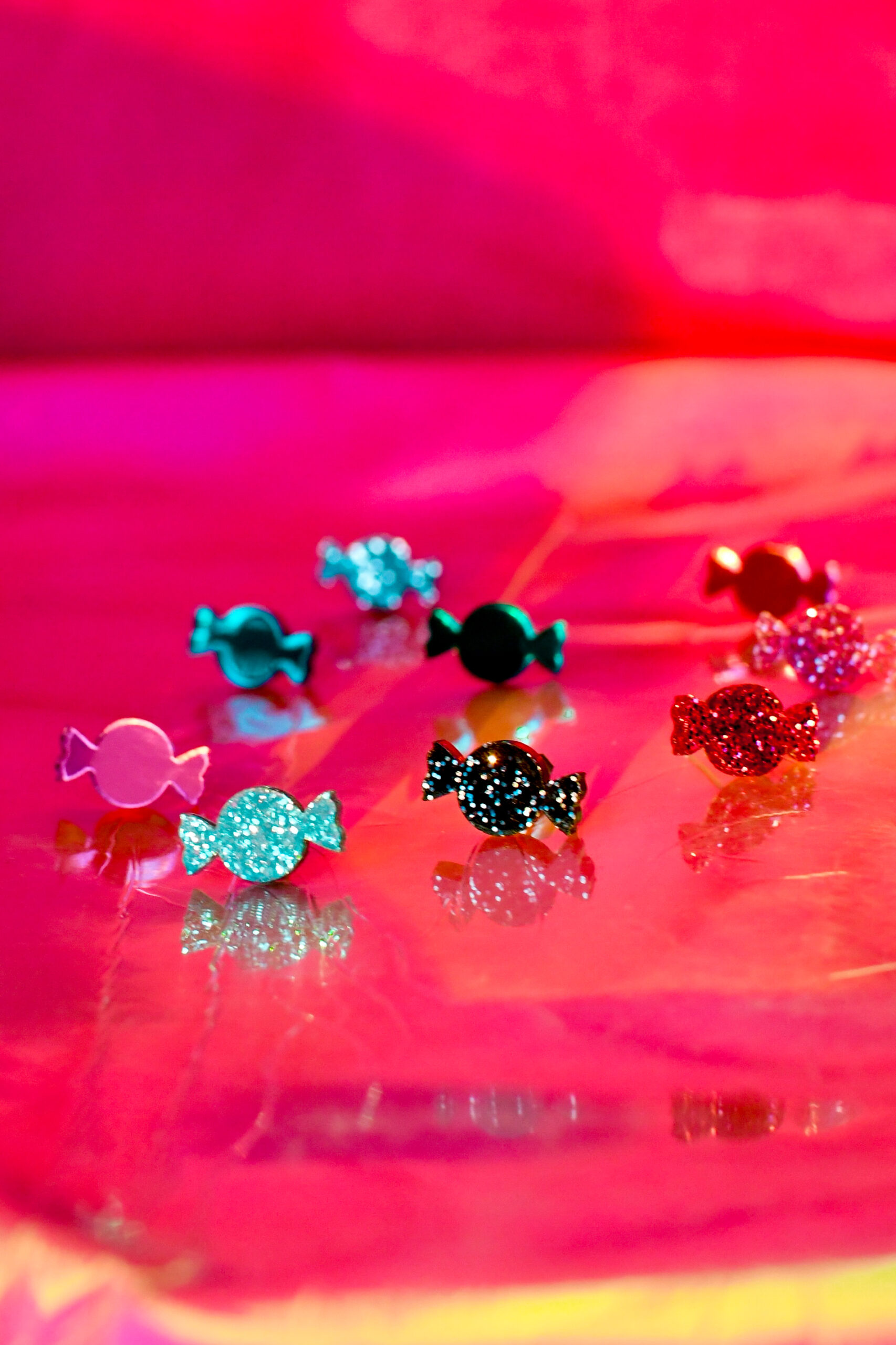 Ihanat Super Söpöt Karkki Nappikorvakorut ovat ihana uutuus! Saatavana nyt jo kahdeksassa sävyssä: pinkki peili, jade peili, vihreä peili, keltainen peili, musta glitter, punainen glitter, party (monivärinen glitter), vaaleanpunainen glitter, pinkki glitter, liila glitter. Korviksen halkaisija on 1,5 cm ja sen paino on alle 1 gramma. Sopii erinomaisesti lapsille ja aikuislle. Ihana lahjaidea! Katso myös muut Nappikorvakorut