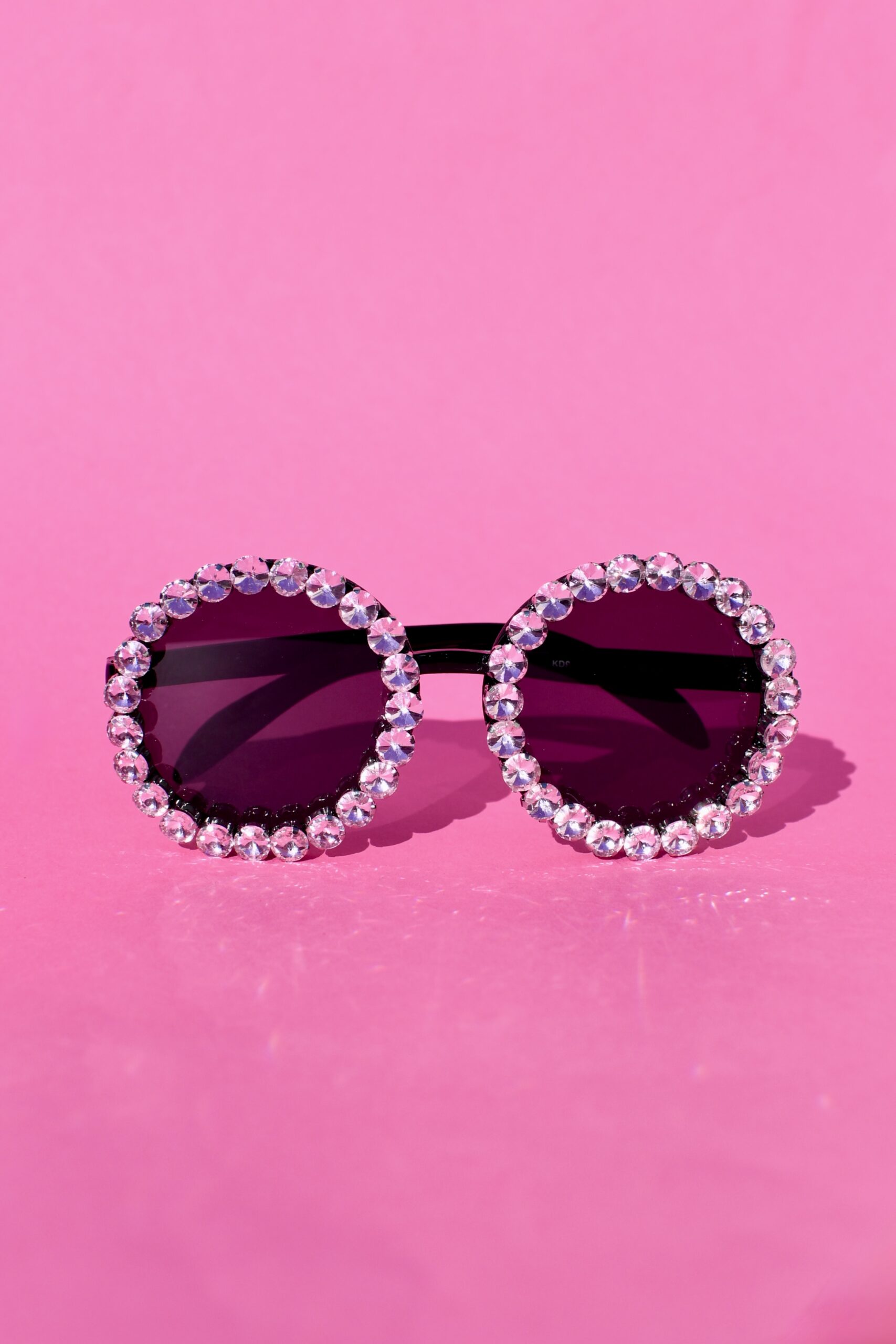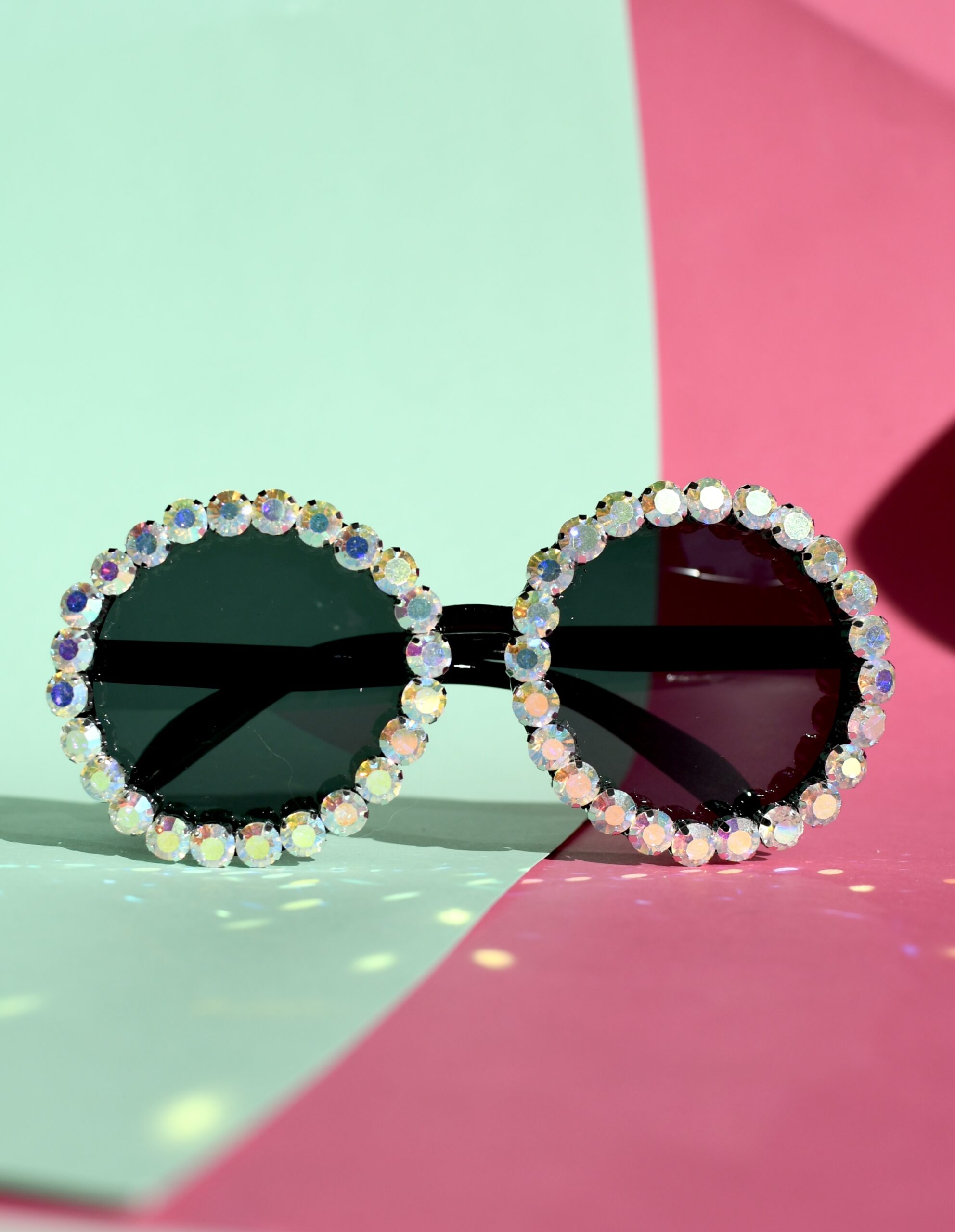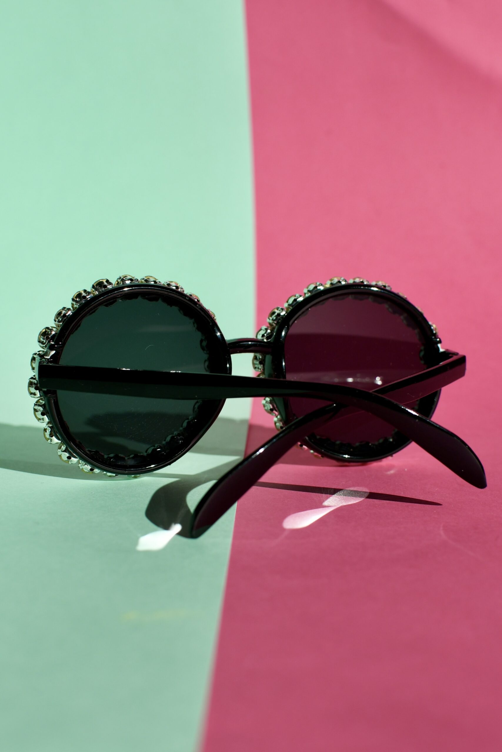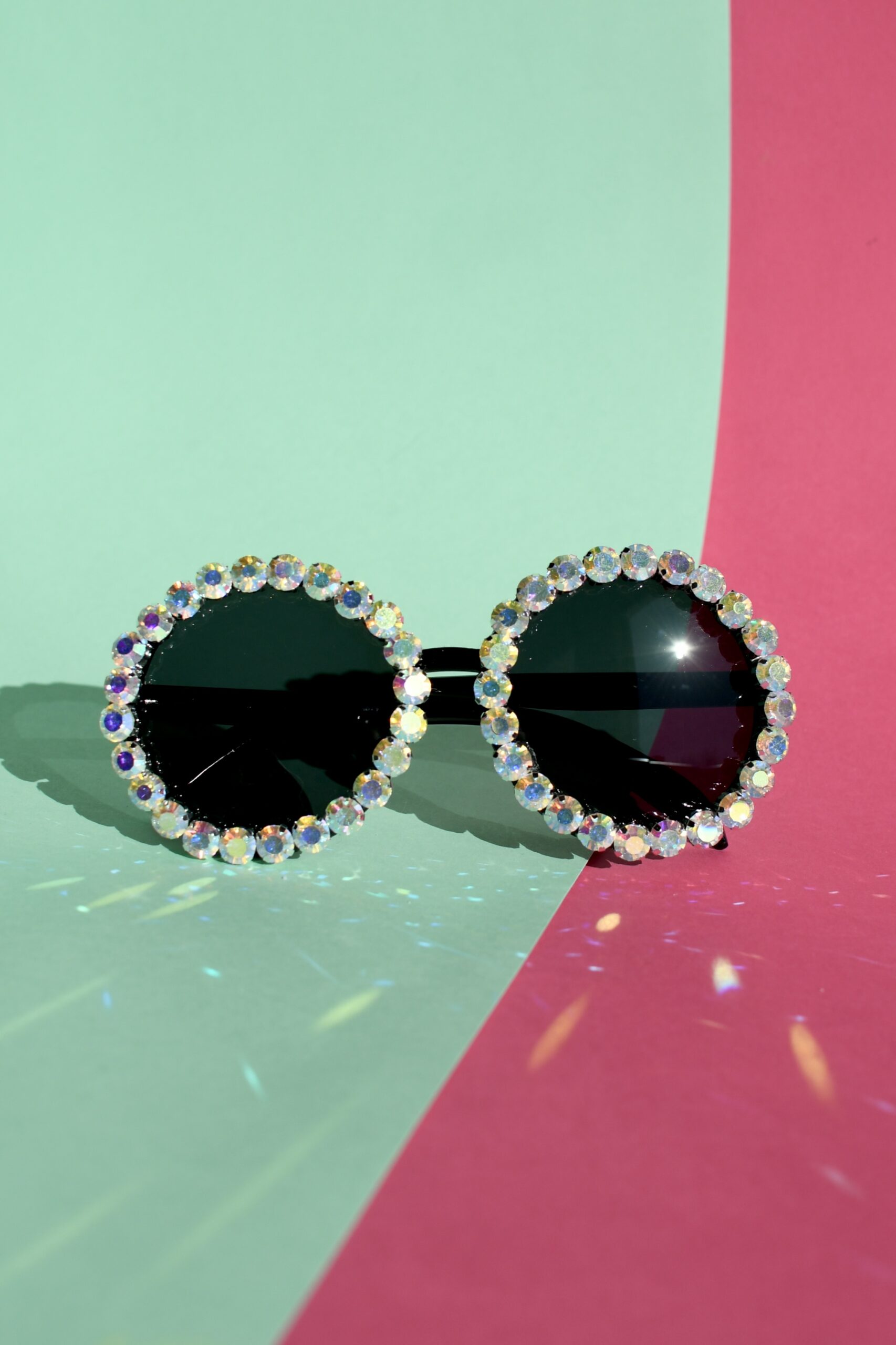 UUTUUS – Pyöreät Mustat Aurinkolasit Timanttikoristeilla – Useita Värejä