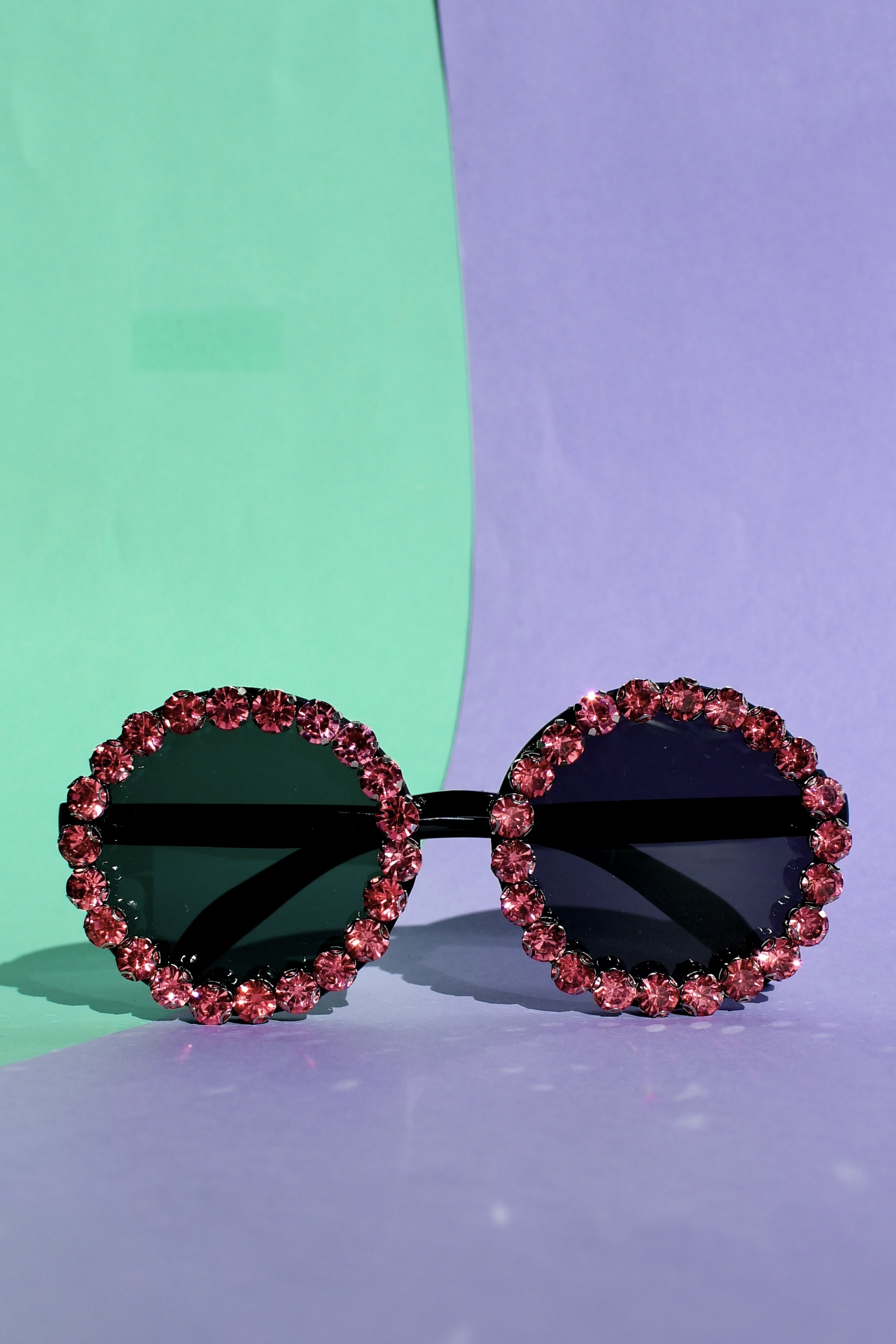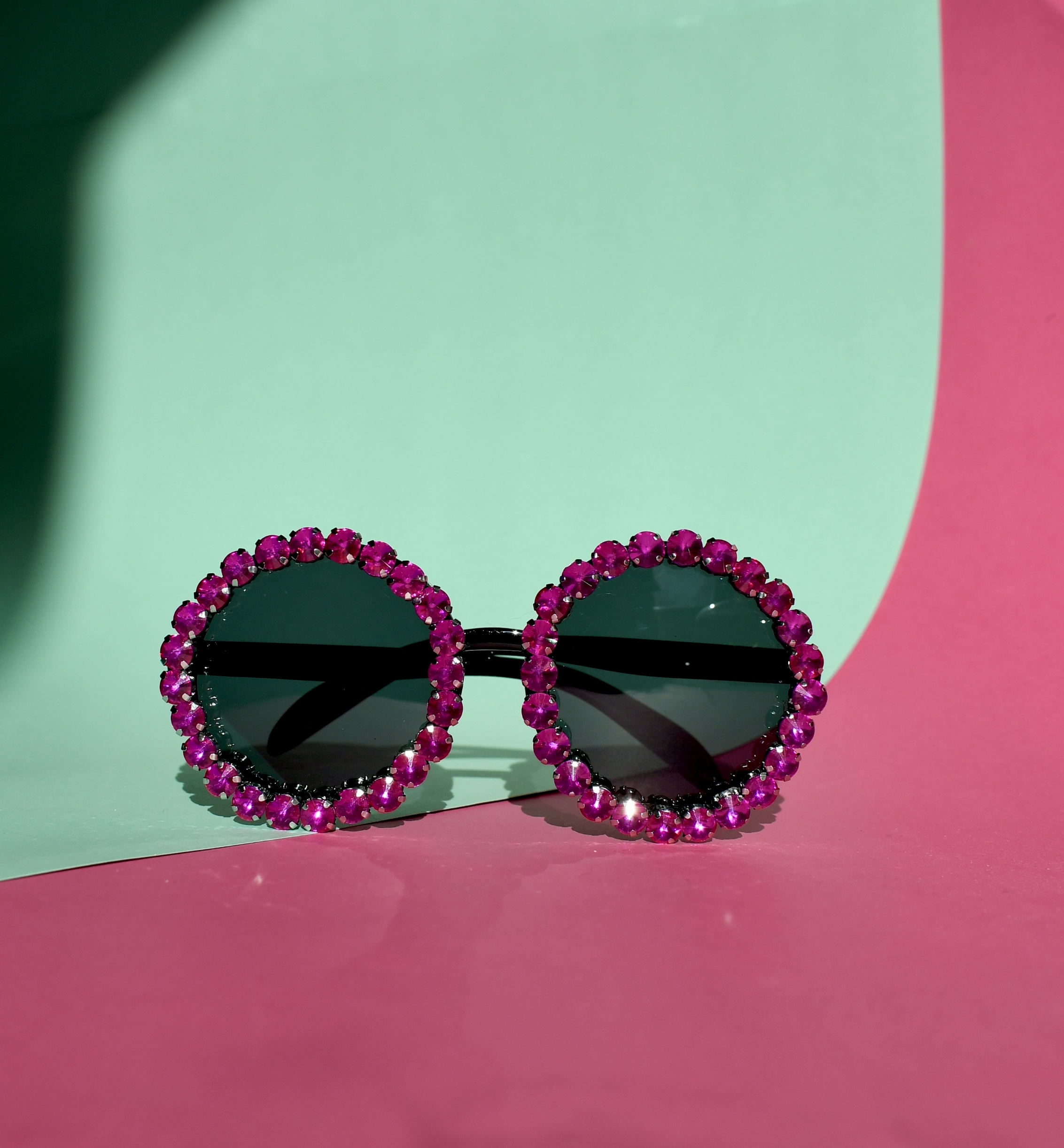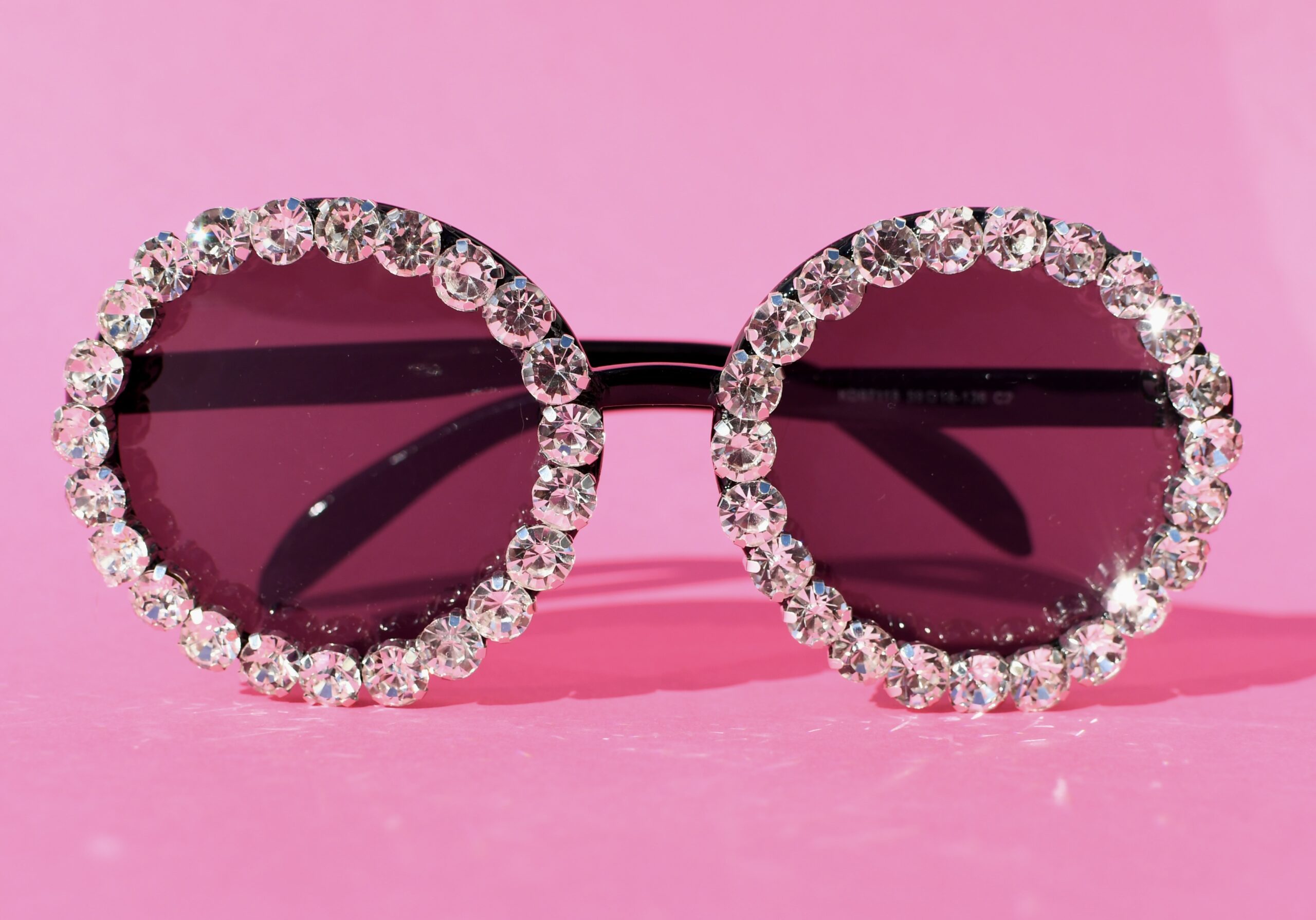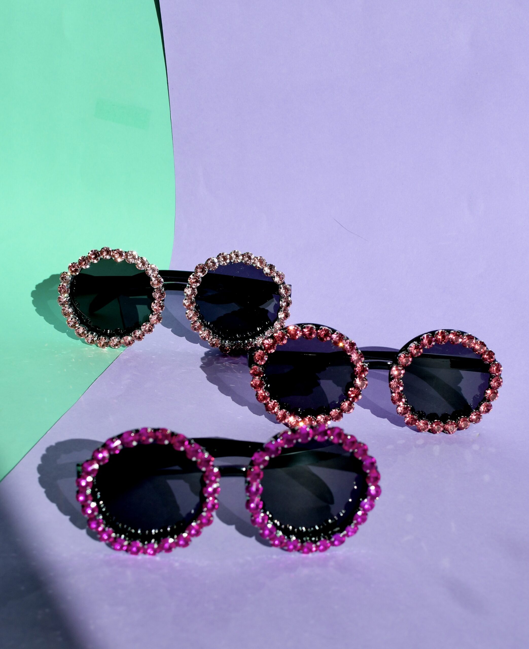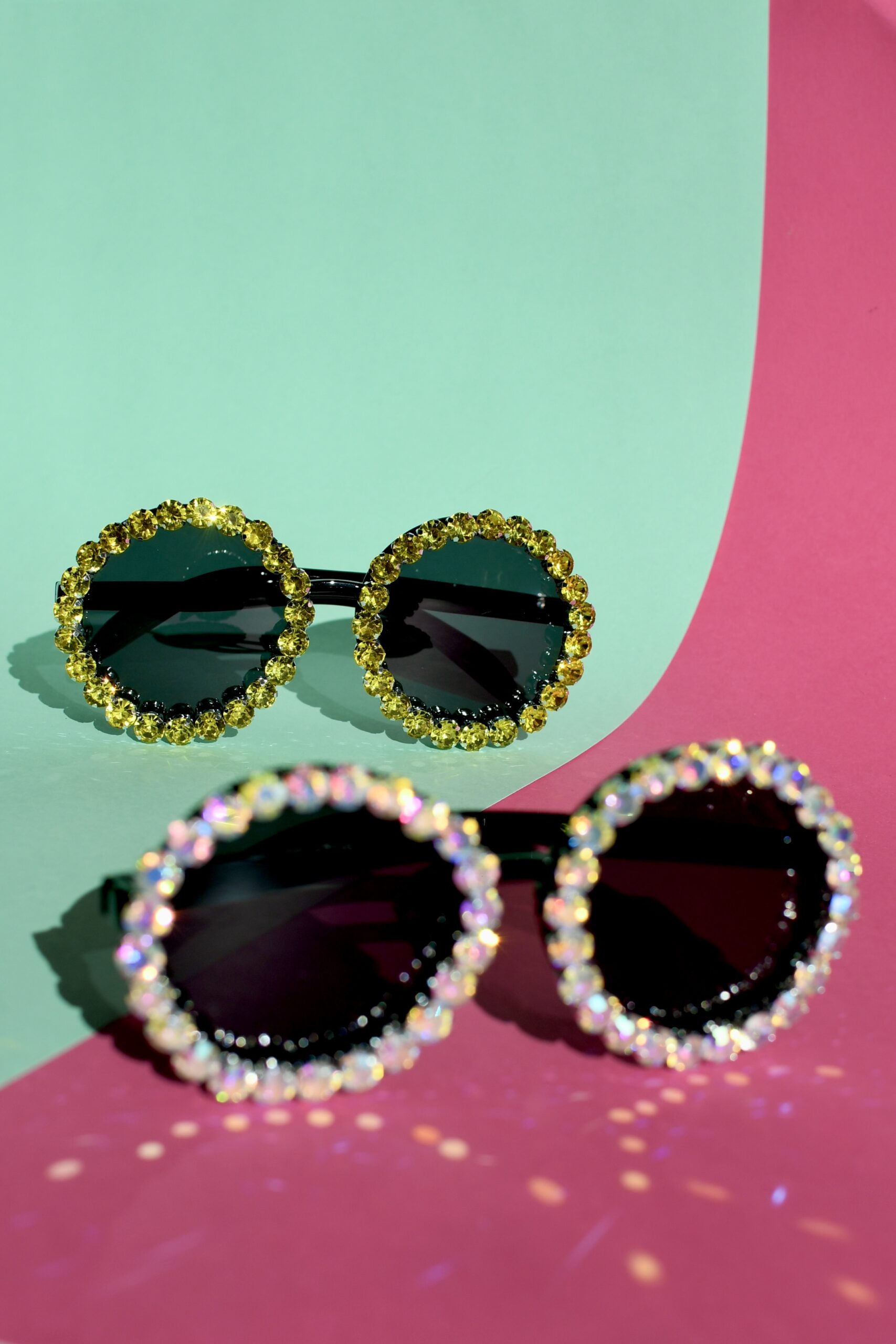 UUTUUS – Pyöreät Mustat Aurinkolasit Timanttikoristeilla – Useita Värejä