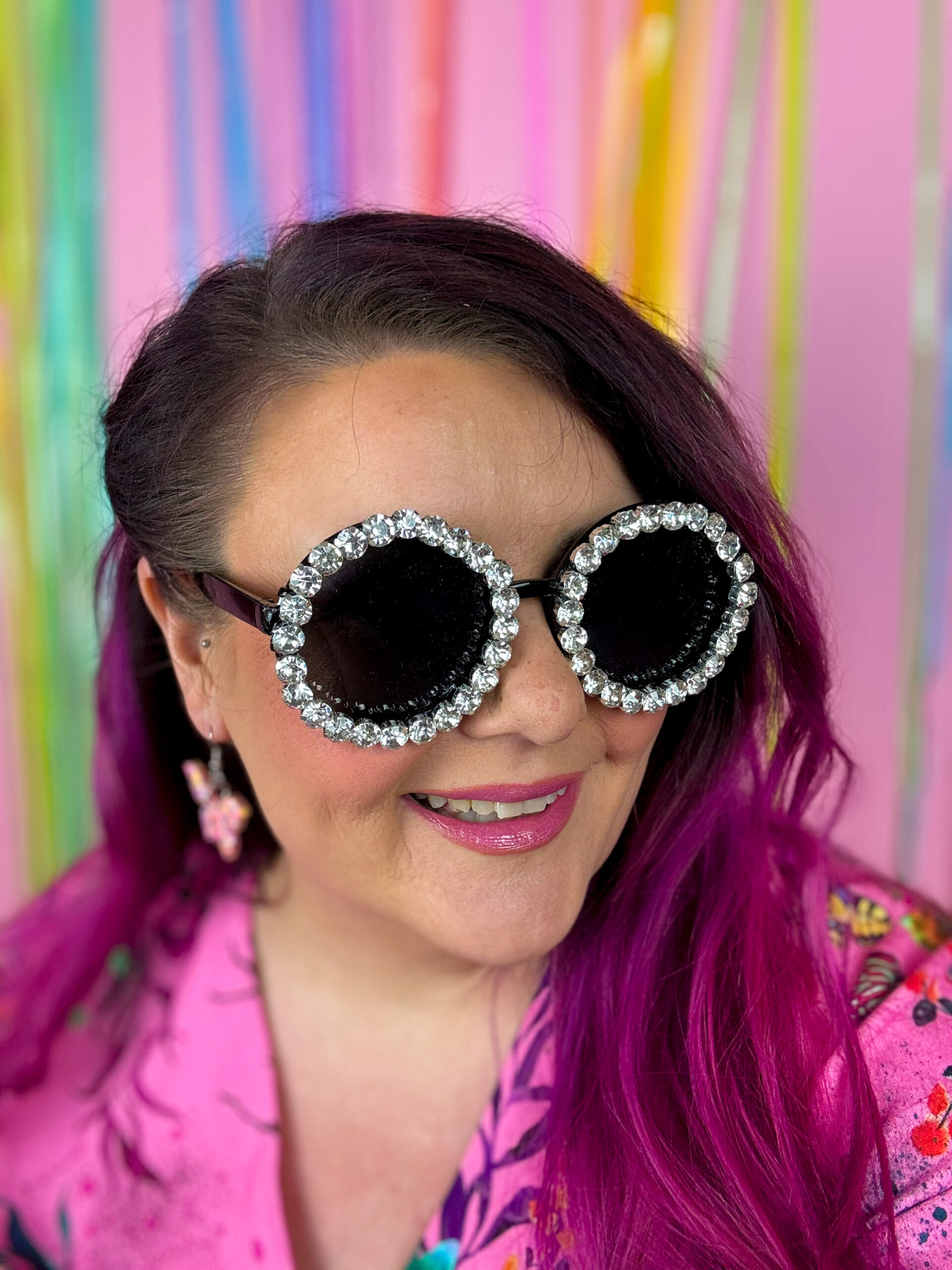 UUTUUS! Upeat pyöreät aurinkolasit timanttikoristeilla ovat varma hitti! Mustat kehykset ja tummat linssit ovat upea asuste ja suojaavat auringolta. Lasit tulevat suojapussissa ja mukana on puhdistusliina. Säilytäthän laseja aina pussissa kun ne eivät ole käytössä.